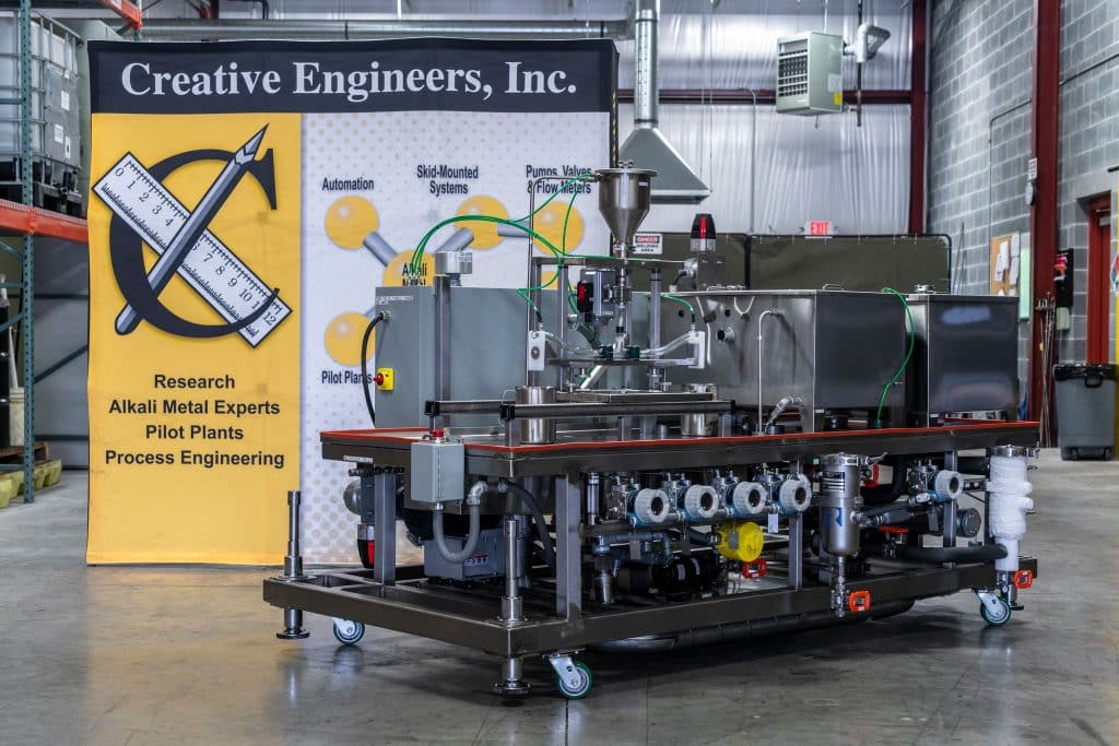 Creative Engineers is a unique and innovative alkali metal engineering company with the capability to design, build, and operate research and pilot-scale systems to meet customer needs. Each of our alkali metal expert engineers has from 5 to 30 years of experience. The rapid results obtainable from CEI’s dedicated resources often accelerate project schedules as opposed to performing the work in-house, where the researcher’s efforts are often allocated among multiple projects.