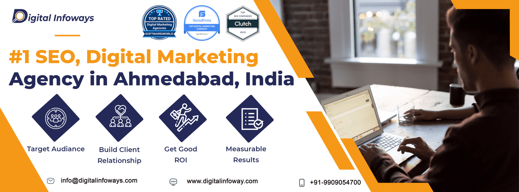 Since 2015, Digital infoways provides high-quality services, SEO, ASO, email marketing, social media marketing, SEO Reseller, Seo consultant, PPC marketing, digital marketing, website development, and design. With our keen endeavour and expert skill, we make your journey easier to reach your targeted audience and achieve potential leads. With 25+ employee strength, we have successfully catered to clients globally. Apart from our business location at Gandhinagar, we also expanded our organization worldwide, which includes Spain and Australia. We guaranteed to 100% satisfaction to our client through our services. Be it improving your conversion rate or driving more sales; you will get end-to-end digital marketing services. With customized strategy and business-oriented goals, we help your brand to make a substantial online presence. Grab your customers’ attention and drive more sale with the best digital marketing services in india. With 7 years of global industry experience and the potential skill of industry experts, we help you to grow your business. With our efficient service and accountability, we strive to deliver quality service for each client.