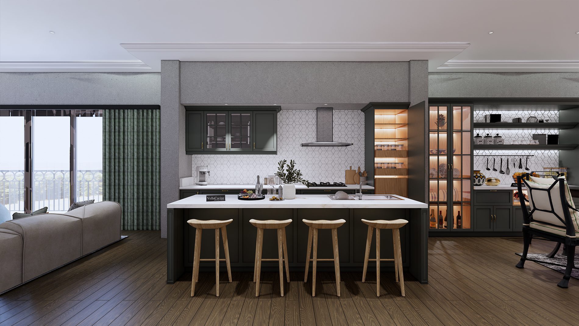 Vella Cucine studio offers a comprehensive variety of materials, styles, designs, accessories, and combination options which assist in making every kitchen smart, attractive, and unique. Vella Cucine offers 150-plus models and specimens with numerous color options, finishes, and endless designs for cabinets, shutters, and handles.